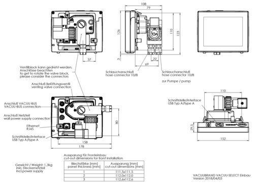 VACUU·SELECT Kompakt-Controller Einbauversion, für VACUU·LAN Arbeitsplätze, komplett mit Vakuumventil, Rückschlagventil, integriertem Keramik-Membran-Vakuumsensor und Belüftungsventil. Mit Steckernetzteil, betriebsfertig, mit Anleitung.
