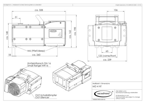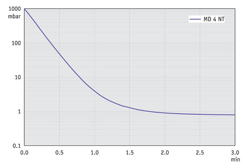 Dreistufige Membranpumpen sind ideal für kontinuierliches, ölfreies Pumpen von Gasen und erreichen ein sehr gutes Endvakuum. Durch die verwendeten Materialien wie Aluminium und ausgewählte Kunststoffe eröffnet sich ein breites Anwendungsfeld bei nicht-aggressiven Gasen. Die neue Reihe NT bietet einen besonders leisen und vibrationsarmen Betrieb, hohe Gasdichtigkeit und verbesserte Leistungsdaten. Durch die hochflexiblen FKM-Doppelmembranen mit Gewebeverstärkung wird eine sehr hohe Membranlebensdauer erreicht. Dreistufige Membranpumpen sind ideal zum kontinuierlichen, ölfreien Evakuieren und Abpumpen nicht-aggressiver Gase bei hohen Vakuumanforderungen wie in der Physik und Analytik. Dank ihres sehr guten Endvakuums können diese Pumpen häufig Drehschieberpumpen ersetzen. Typische Anwendungen sind die Entgasung von zähflüssigen Medien und insbesondere als Vorpumpe für Turbomolekular-Drag-Pumpen.