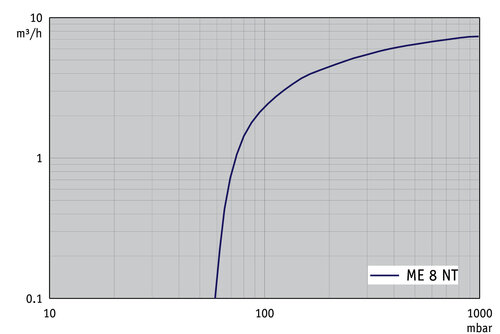 Membranpumpen sind ideal für kontinuierliches, ölfreies Evakuieren und Fördern von Gasen. Die verwendeten Materialien wie Aluminium und ausgewählte Kunststoffe eröffnen ein breites Anwendungsfeld bei nicht-aggressiven Gasen. Durch die hochflexiblen FPM-Doppelmembranen mit Gewebeverstärkung wird eine extrem hohe Membranlebensdauer erreicht. Diese vierzylindrige Ausführung weist ein besonders hohes Saugvermögen auf. Die neue Reihe NT zeichnet sich durch verbesserte Leistungsdaten aus. Große einstufige Membranpumpen sind ideal für kontinuierliches, ölfreies Pumpen großer Mengen von Gasen. Typische Anwendungen sind Vakuumerzeugung am Trockenschrank sowie allgemein für das Evakuieren und Fördern nicht-aggressiver Gase. Diese Pumpen empfehlen wir insbesondere für Prozesse mit hohem Gasdurchsatz bei hohen Ansaug- und Prozessdrücken. Sie erlauben besonders schnelle Evakuierungen.
