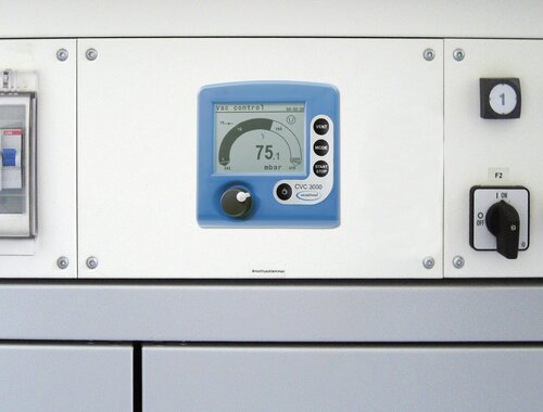 Der CVC 3000 führt Vakuumprozesse durch Steuern von Vakuumpumpen, Vakuum- und Kühlwasserventilen. Das Menü-basierte Bedienkonzept mit Graphikdisplay und Drehknopf macht ihn nahezu selbsterklärend. Bereits integriert im Gerät sind ein Belüftungsventil und der kapazitive Keramik-Membran-Vakuumsensor, der chemisch hochbeständig ist und eine hervorragende Messgenauigkeit unabhängig von der Gasart bietet. Der Controller verfügt über einen Zweipunktregel-Modus zum Schalten eines Saugleitungsventils und kann frei programmiert werden. Zehn Programmplätze für Ihre Prozesse stehen dafür zur Verfügung. Jedes Programm bietet bis zu zehn Zeit- und Druckschritte mit Steuerfunktionen wie Belüften, Abpumpen und Rampenfunktion. Externe Ventile und Sensoren für Füllstand und Vakuum (bis in den Feinvakuumbereich) sind dank VACUU·BUS®-System leicht anschließbar und werden automatisch konfiguriert. Zudem ermöglicht der CVC 3000 eine Relativdruckmessung bezüglich eines Referenzsensors (VSK 3000). Der Vakuum-Controller CVC 3000 ist für Laboraufgaben optimiert. Zusammen mit einem Vakuumventil steuert er Laborvakuumprozesse schonend und zugleich schnellstmöglich. Die Vakuumregelung erfolgt durch Schalten des Vakuumventils (als Zubehör oder gleich im Paket mit CVC 3000 + VV-B6C). Am CVC 3000 lassen sich Betriebsparameter einfach auf die verschiedenen Anforderungen anpassen. So sind Vakuum- oder Zeitvorgaben möglich. Nachlaufzeiten für Ventile sind einstellbar.
