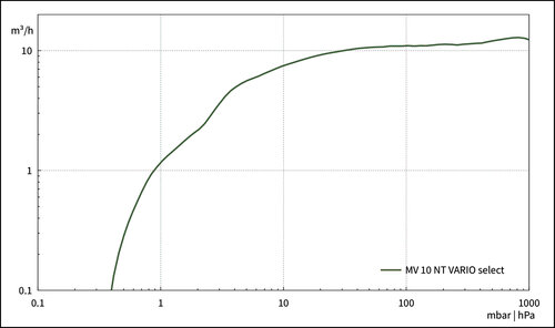 Vierstufige Membranpumpen sind ideal für kontinuierliches, ölfreies Pumpen von Gasen und erreichen ein besonders gutes Endvakuum. Durch die verwendeten Materialien wie Aluminium und ausgewählte Kunststoffe eröffnet sich ein breites Anwendungsfeld bei nicht-aggressiven Gasen. Diese Pumpen bieten die vorteilhafte Kombination von hohem Saugvermögen mit einem besonders guten Endvakuum bis 0.5 mbar bzw. bis 0.3 mbar für die VARIO®-Ausführung mit selbstoptimierender Drehzahlregelung. Durch die hochflexiblen FPM-Doppelmembranen mit Gewebeverstärkung wird eine sehr hohe Membranlebensdauer erreicht. Die VARIO®-Ausführung regelt das Vakuum punktgenau über die Drehzahl und besteht aus der Pumpe und dem Vakuum-Controller VACUU·SELECT® mit externem Druckaufnehmer. Durch die VARIO®-Regelung läuft die Pumpe nicht schneller als nötig. Das verlängert die Wartungsintervalle.